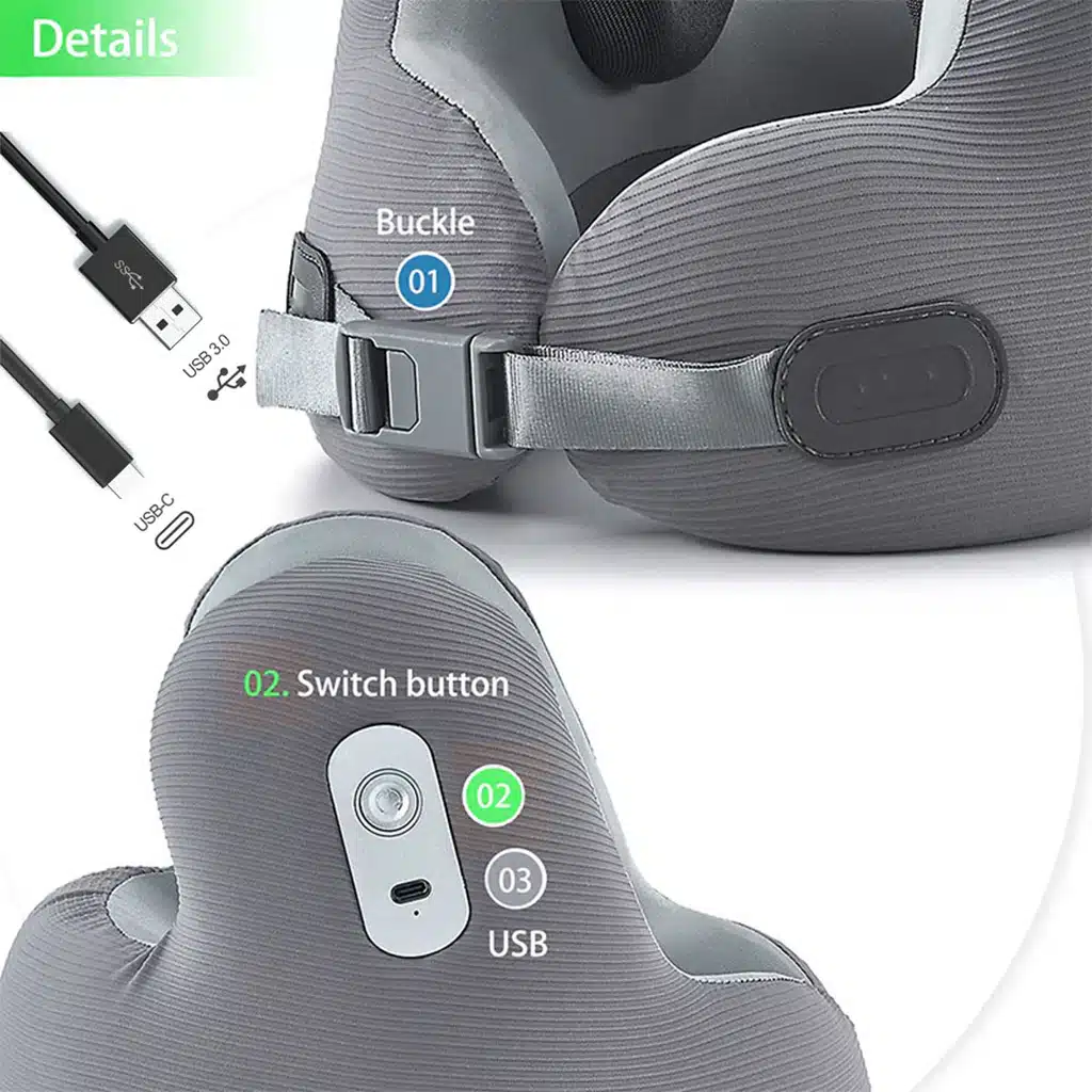 - طراحی سهبعدی با محافظ قابل تنظیم گردن: این ماساژور دارای طراحی سهبعدی و پشتیبانی از گردن با محورهای قابل تنظیم است که به بهبود موقعیت گردن و توزیع فشار کمک میکند. این قابلیت محافظت بهتری از گردن در برابر فشار و تنشهای ناشی از استفاده طولانیمدت ارائه میدهد و برای سفرهای طولانی یا استفاده در زمان استراحت انتخاب مناسبی است.