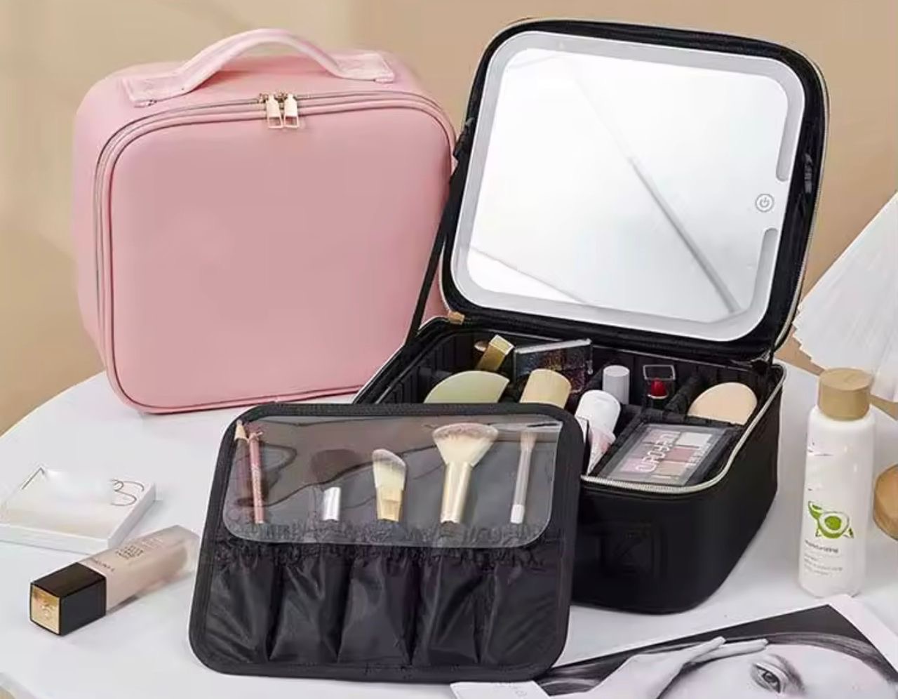 کیف لوازم آرایشی با آینه لمسی چراغ دار