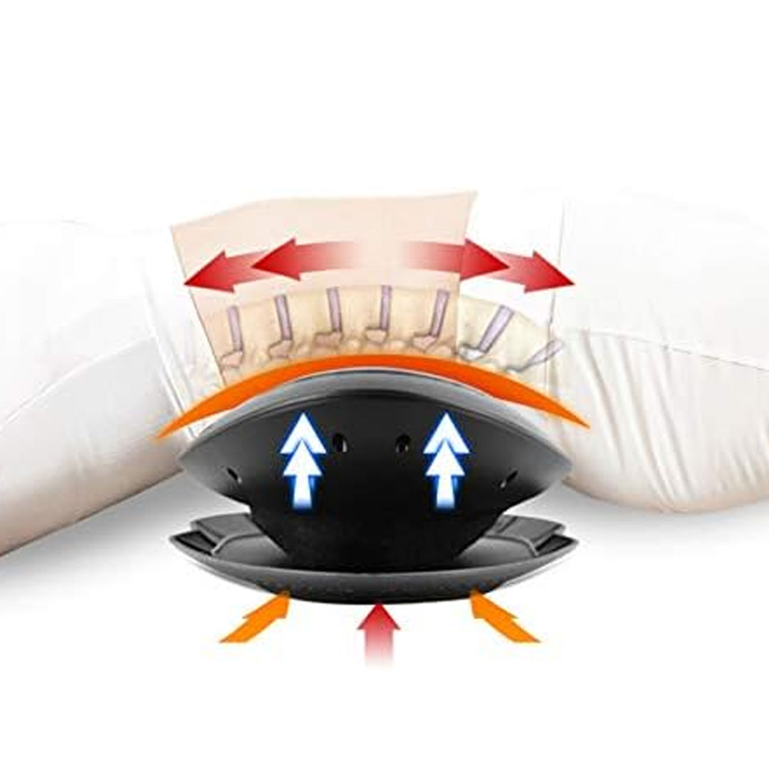 کیسه هوای الکتریکی دستگاه، با انقباض و انبساط ریتمیک حرکت میکند و حدود ۱۰ سانتیمتر تراکشن مؤثر ایجاد میکند. این کشش ملایم، ستون فقرات را بهآرامی بالا و پایین میبرد و به مرور زمان انحنای طبیعی و سالم کمر را بازسازی میکند.