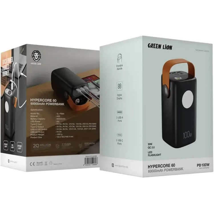 اگر به دنبال پاوربانک 100 وات با ظرفیت بالا و قابلیت شارژ لپ تاپ هستید، این مدل از برند Green Lion گزینه ای قابل اعتماد محسوب می شود. خرید پاور بانک 60000 فست شارژ گرین لاین (Green Lion ) اصلی مدل GL-PB94