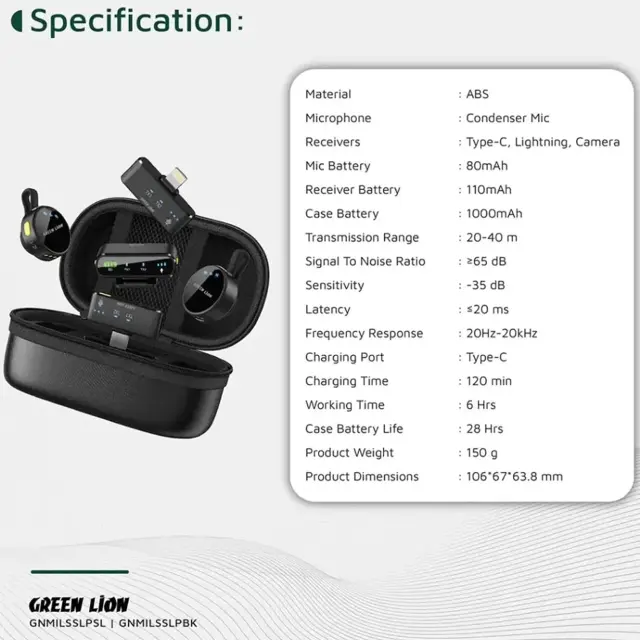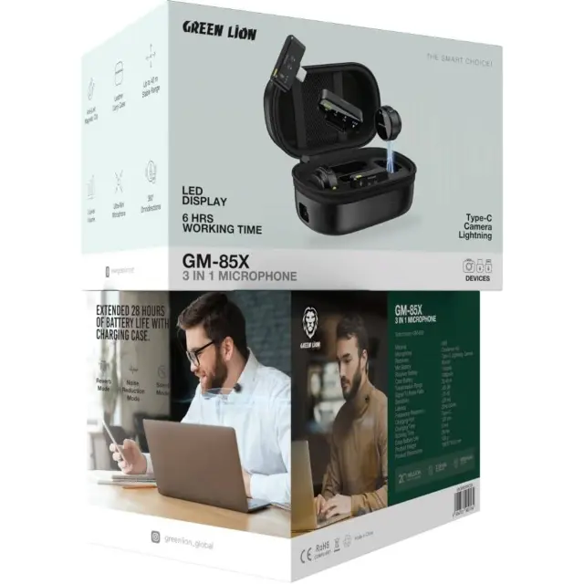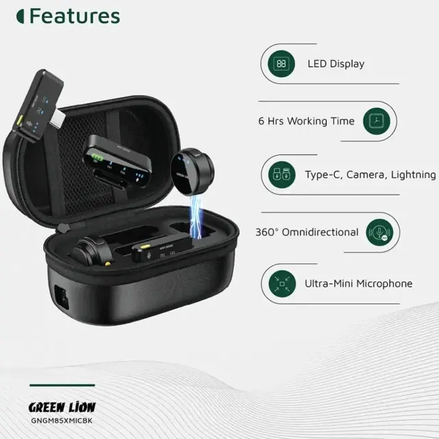 میکروفون یقهای بیسیم سه کاره گرینلاین Green Lion GM-85X/GNGM85XMICBK