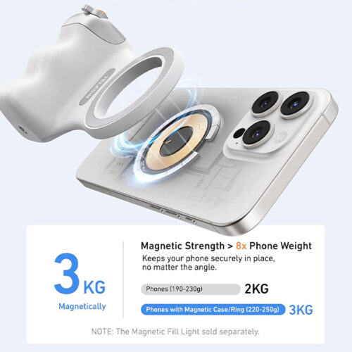 این گریپ سبک با مگنت N52 دوطرفه اتصال قوی و ضد لغزش فراهم میکند. شاتر دو مرحلهای و زوم سختافزاری تجربهای شبیه DSLR به شما میدهد .