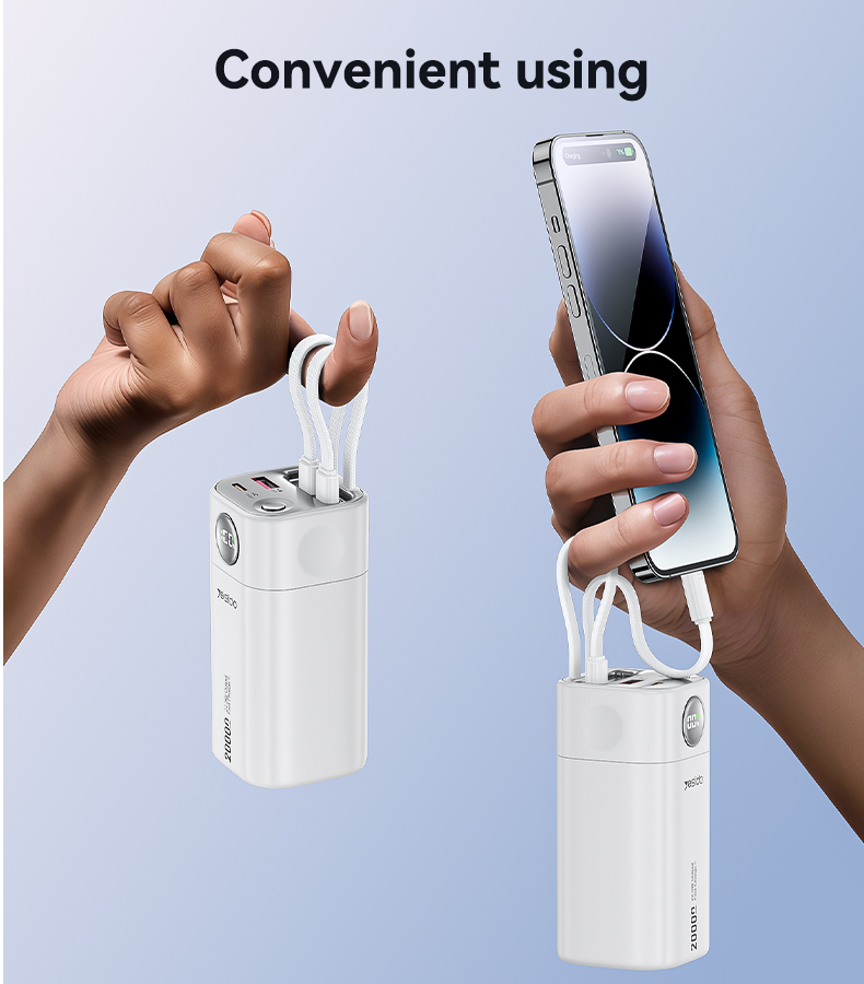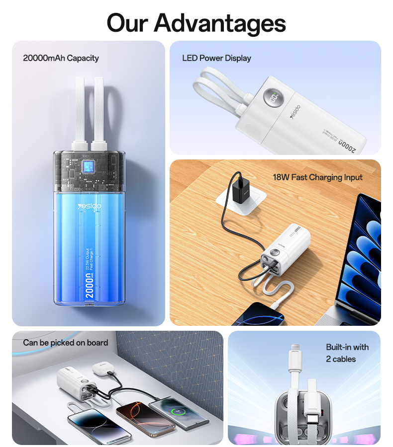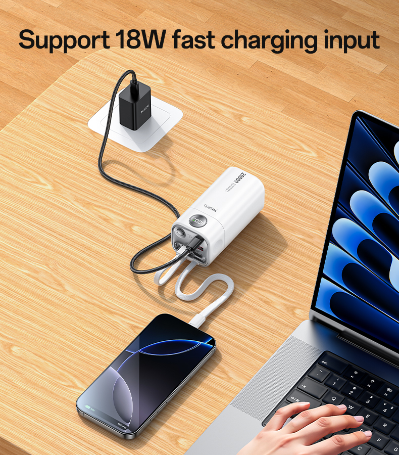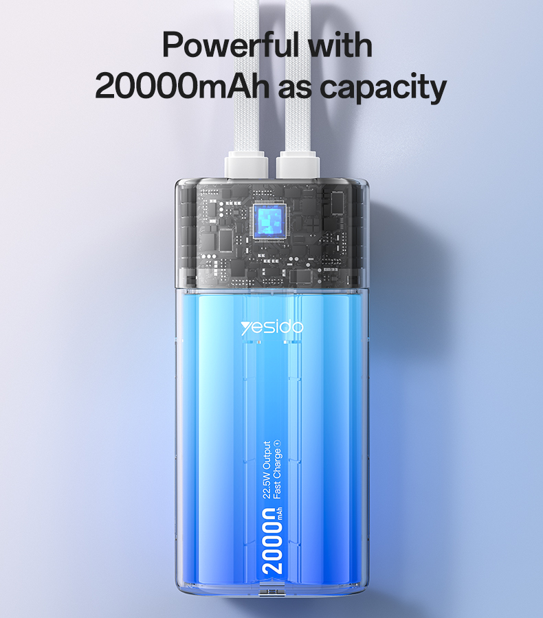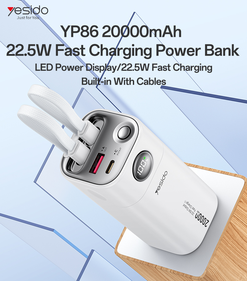 پاوربانک فست شارژ یسیدو PD+QC YESIDO YP86 ظرفیت 20000 میلی آمپر ساعت همراه کابل متصل تایپسی و لایتنینگ توان خروجی : 22.5 وات ظرفیت : 20هزار میلی آمپر دارای خروجی USB و تایپسی