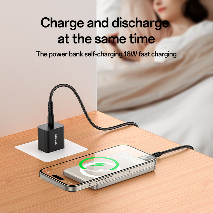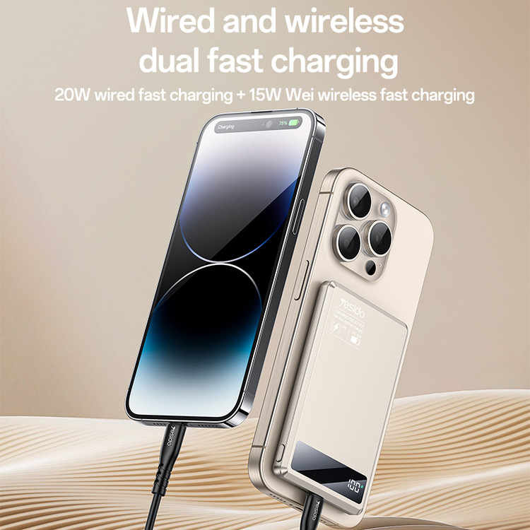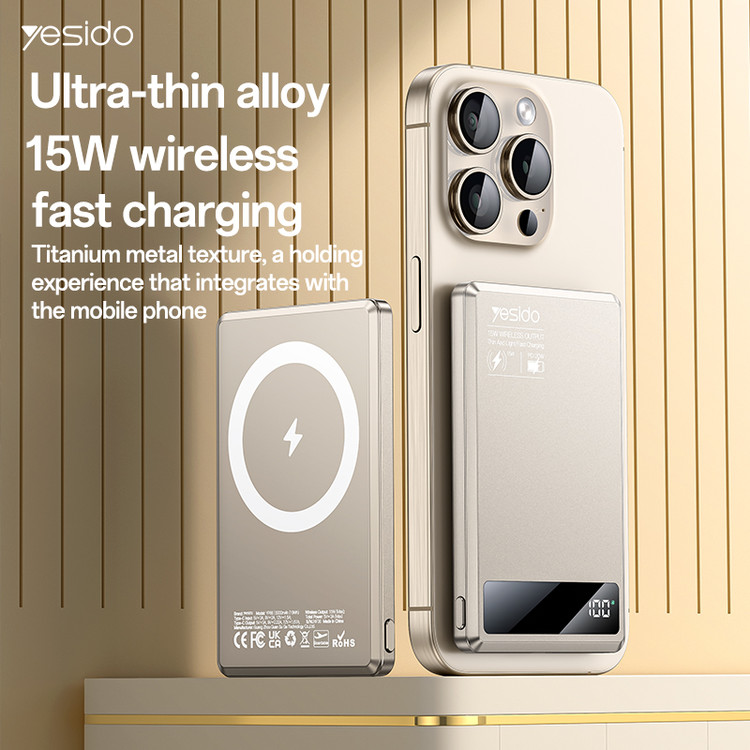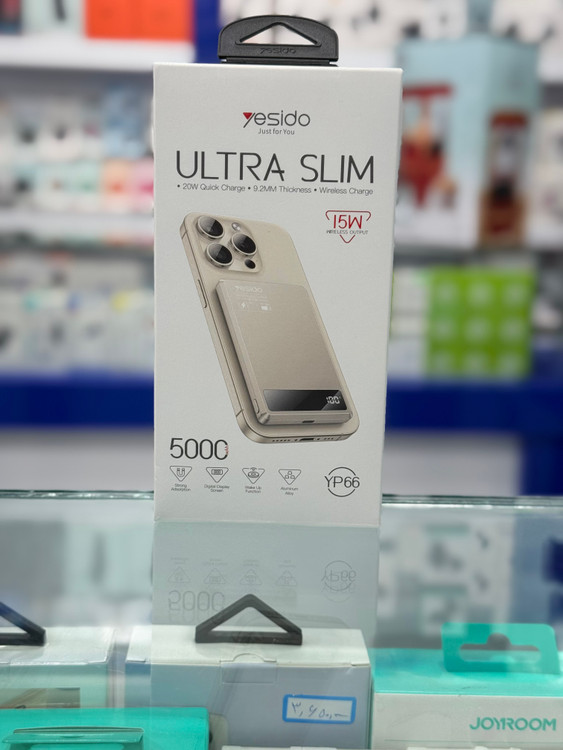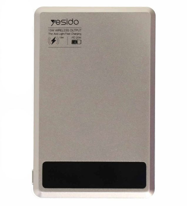 پاوربانک Yesido YP66 با ظرفیت 5000 میلیآمپر ساعت طراحی شده تا به کاربرانی که به دنبال یک شارژر همراه کمحجم، سبک و چندکاره هستند، گزینهای مطمئن ارائه دهد. این مدل علاوه بر شارژ سیمی، از قابلیت شارژ بیسیم (Wireless Charging) نیز پشتیبانی میکند — تا حداکثر توان 15 وات — که آن را برای استفاده با گوشیهای دارای پشتیبانی MagSafe یا Qi بسیار مناسب میکند. ساختار مگنتی بدنه کمک میکند گوشی را بهراحتی روی بدنه چسبانده و بدون اتصال کابل، شارژ شود.