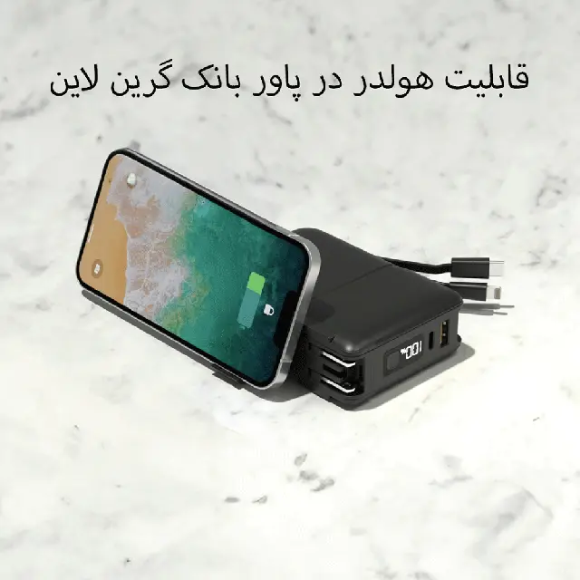 Green Lion Travel علاوهبر پاوربانک و شارژر، بهعنوان پایه نگهدارنده موبایل نیز قابل استفاده است. وقتی گوشی در حال شارژ است، میتوانید آن را روی پایه قرار داده و بهراحتی ویدئو تماشا کنید یا تماس تصویری بگیرید.