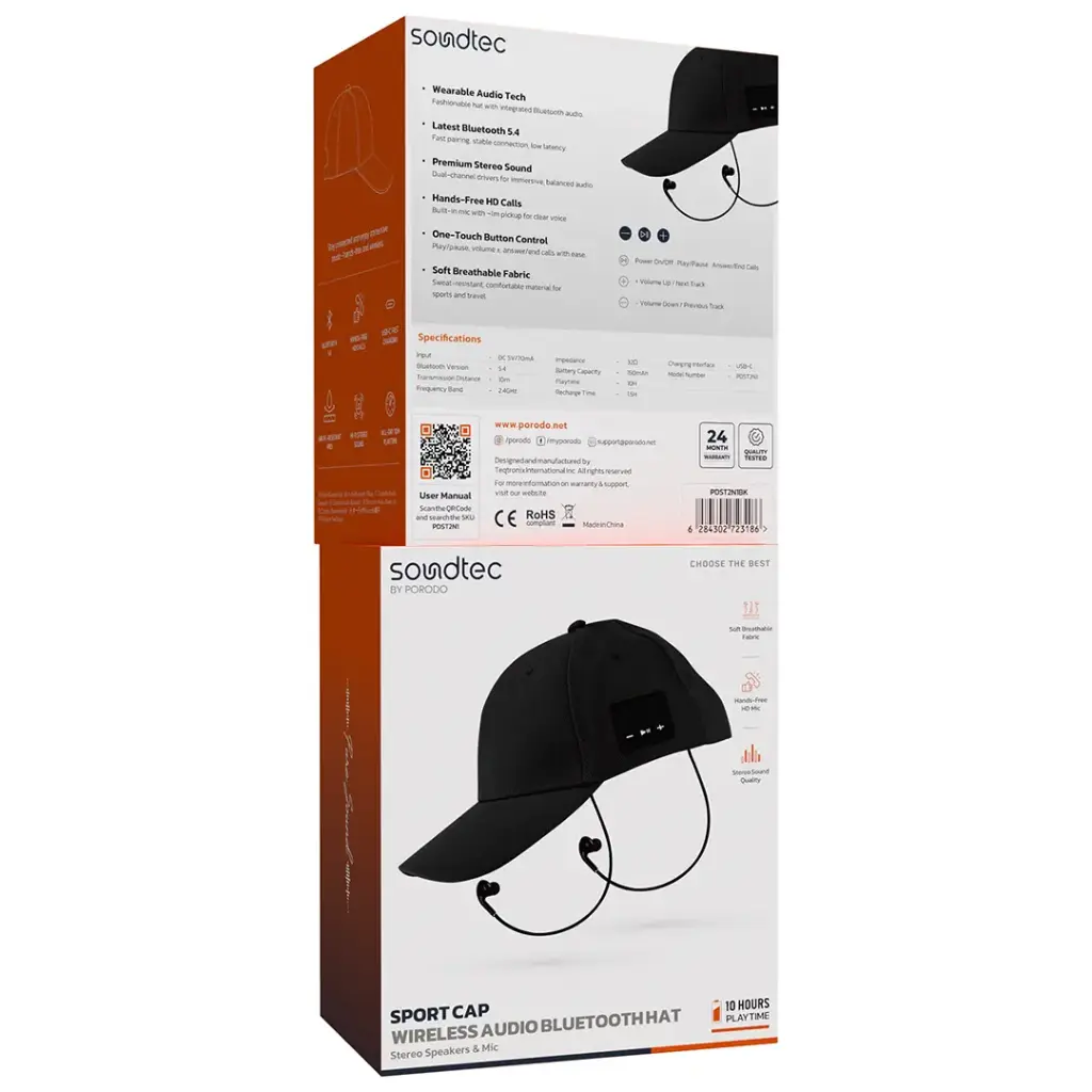 کلاه Porodo Soundtec Wireless Audio Bluetooth Hat با اسپیکرهای استریو و میکروفون یک محصول نوآورانه پوشیدنی صوتی است که هم ظاهر ورزشی و جذاب دارد و هم میتواند تجربه موسیقی و مکالمه را در هر زمان و مکان برایتان آسان کند. این محصول با طراحی راحت، سبک و قابلتنفس، مخصوص افرادی است که هنگام پیادهروی، دویدن، ورزش، سفر یا کارهای روزمره میخواهند موزیک گوش دهند یا تماسهای Hands‑Free برقرار کنند.