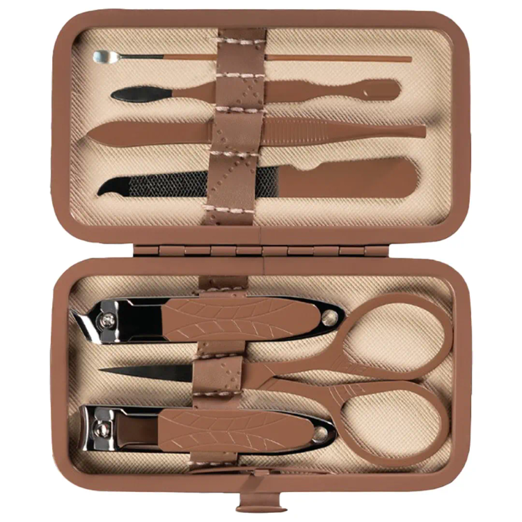 - اقلام: گوشپاککن، پوشر کوتیکول، تمیزکننده ناخن، موچین، قیچی ناخن، ناخنگیر بزرگ و کوچک