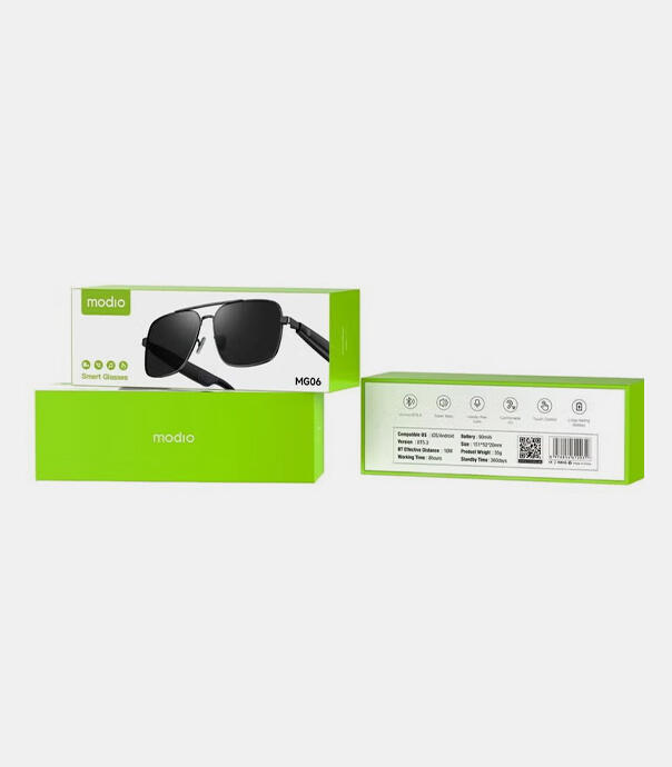 عینک مکالمه دار MODIO مدل MG06 ترکیبی هوشمند از محافظت از چشم، ایمنی رانندگی و فناوری روز است. این محصول برای رانندگانی طراحی شده که به دنبال راحتی، امنیت و استایل هستند. با داشتن این عینک، دیگر نیازی به هندزفری یا هدفون نخواهید داشت و می توانید در طول رانندگی هم از تماس ها و موسیقی لذت ببرید و هم چشم هایتان را از نور خورشید محافظت کنید. اگر بهدنبال خرید این محصول کاربردی و شیک هستید، میتوانید از طریق فروشگاه اینترنتی مکعب اقدام کنید و با خیال راحت به یک تجربه رانندگی مدرن و هوشمند قدم بگذارید.