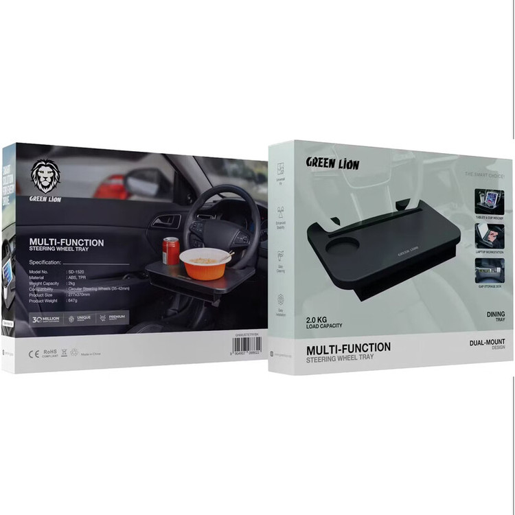 تخته فرمان چندکاربردی گرین لاین Green Lion بهگونهای طراحی شده که روی فرمانهای دایرهای با قطر 35 تا 42 میلیمتر بهسرعت و بدون پیچیدگی نصب میشود. طراحی دوگانه نصب، ثبات و ایمنی بیشتری هنگام استفاده فراهم میکند. این ویژگی باعث میشود تجربه استفاده در سفرهای طولانی یا کار با لپتاپ راحت و بدون دغدغه باشد.