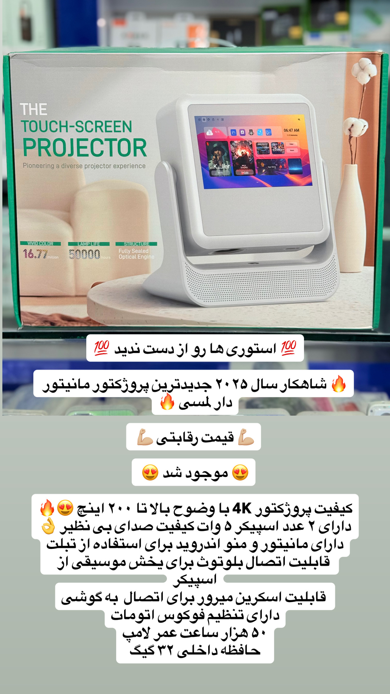 پروژکتور ۴K با کیفیت بالا، دارای ۲ عدد اسپیکر ۵ وات و کیفیت صدای بینظیر. دارای مانیتور و منو اندروید برای استفاده از تبلت. قابلیت اتصال بلوتوث برای پخش موسیقی از اسپیکر. قابلیت اسکرین مینور برای اتصال به گوشی. دارای تنظیم فوکوس اتومات و ۵۰ هزار ساعت عمر لامپ.
