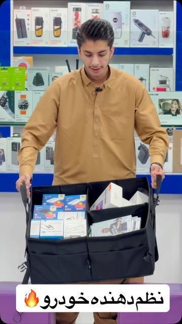 جعبه برزنتی نظم دهنده صندوق عقب انواع خودرو دارای دستگیره کناری برای حمل و جابجایی راحت ظرفیت 57 تسمه هاى قابل تنظيم و روكش جدا شونده براى پايدار ماندن در صندوق عقب ببنديد طراحى جعبه محكم ومرتب با دوام وآسان در نصب صندوق عقب شمارا هميشه مرتب نگه ميدارد.