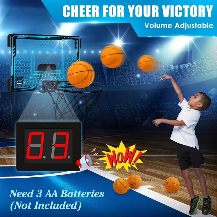 این محصول یک ست بسکتبال رومیزی/خانگی با شمارشگر امتیاز الکترونیکی است که مخصوص بازی و سرگرمی کودکان و نوجوانان طراحی شده. ویژگیها: دارای شمارشگر دیجیتال امتیاز برای ثبت امتیازات به صورت خودکار. افکتهای صوتی جذاب هنگام گل شدن توپ. نورپردازی LED رنگی برای هیجان بیشتر در بازی.