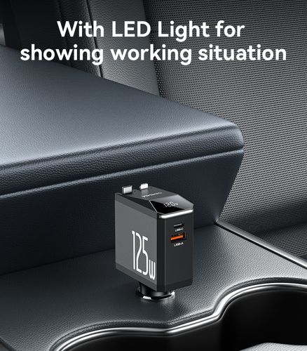 این شارژر با توان کلی 125W، قابلیت شارژ همزمان چند دستگاه را با سرعت بالا دارد. شامل QC3.0، PD3.0، AFC، FCP، SCP و PPS برای شارژ بهینه و ایمن انواع دستگاهها. کابل جمعشونده 70 سانتیمتری: انعطافپذیر و مناسب برای استفاده در صندلیهای عقب یا جلو خودرو. نمایشگر LED ولتاژ: نمایش لحظهای ولتاژ برای کنترل ایمنی شارژ.