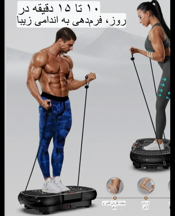 دستگاه لاغری ویبراتور خانگی با قابلیت شبیهسازی حرکات ورزشی و دستگاه دارای 2 عدد کش ورزشی. این دستگاه همزمان چربی سوزی داشته و بدن را لیفت می کند.