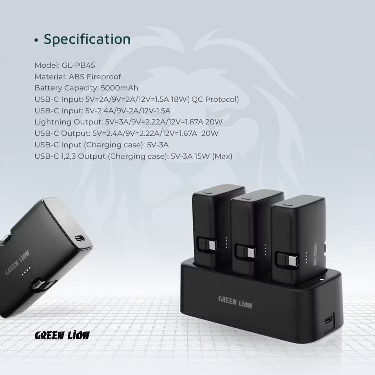 پک سه عددی پاوربانک و شارژر گرین لاین Green Lion 3in1 Power Bank Station GN3IN1PB5KBK