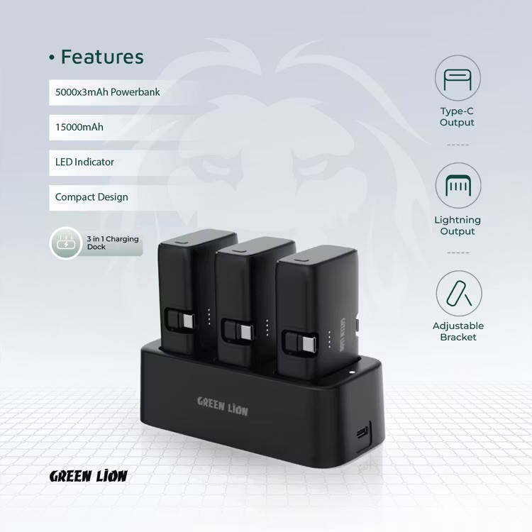 پک سهتایی Green Lion 3in1 Power Bank Station انتخابی ایدهآل برای خانوادهها، گروههای کاری یا افرادیست که نیاز به شارژ چند دستگاه بهصورت همزمان دارند. این محصول شامل یک پایهی شارژ مرکزی و سه پاوربانک مجزا با ظرفیت بالا است که هرکدام بهصورت مستقل نیز قابل استفادهاند.